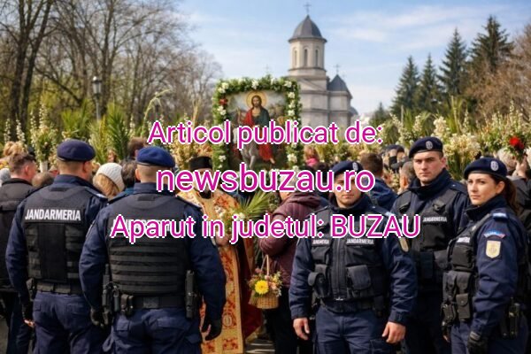 Tot sâmbătă, jandarmii buzoieni vor acționa pentru asigurarea ordinii publice cu ocazia Procesiunii de Florii. Manifestarea religioasă va începe la ora 17:00, cu punctul de plecare din Parcul Crâng. Traseul va continua pe Bulevardul Nicolae Bălcescu, Bulevardul Unirii și Strada Obor, având ca destinație finală Catedrala Arhiepiscopală „Înălțarea Domnului”.